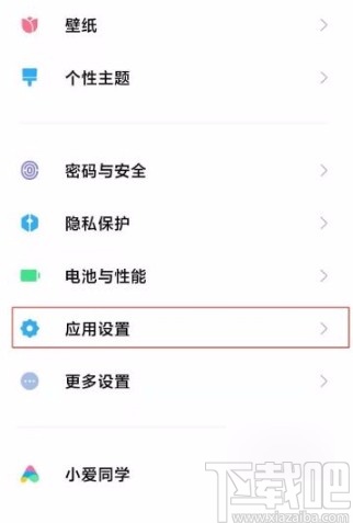 2.进入到设置页面后,我们在页面上找到“应用设置”选项,点击该选项就可以切换到应用设置页面。