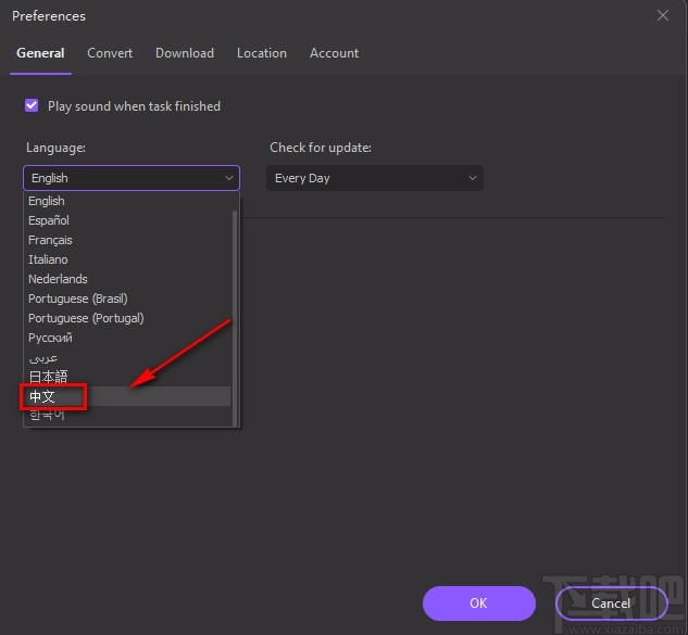 4.接下来我们点击“Language”选项下方的下拉按钮,在下拉框中找到“中文”并点击就可以了。