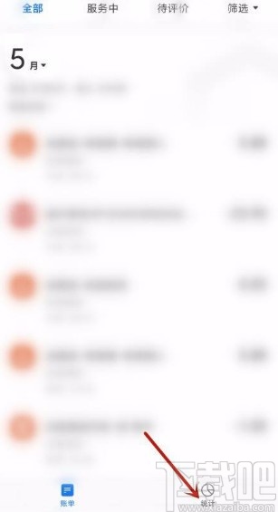 3.然后在账单页面中,我们在页面下方找到“统计”选项,点击这个选项就可以进行下一步操作。