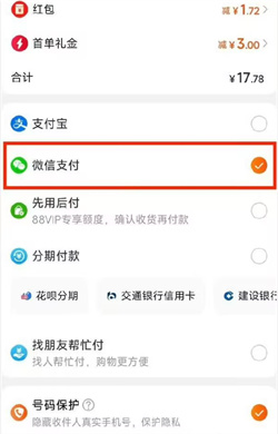 3、这个时候将支付方式改为【微信支付】就行啦。