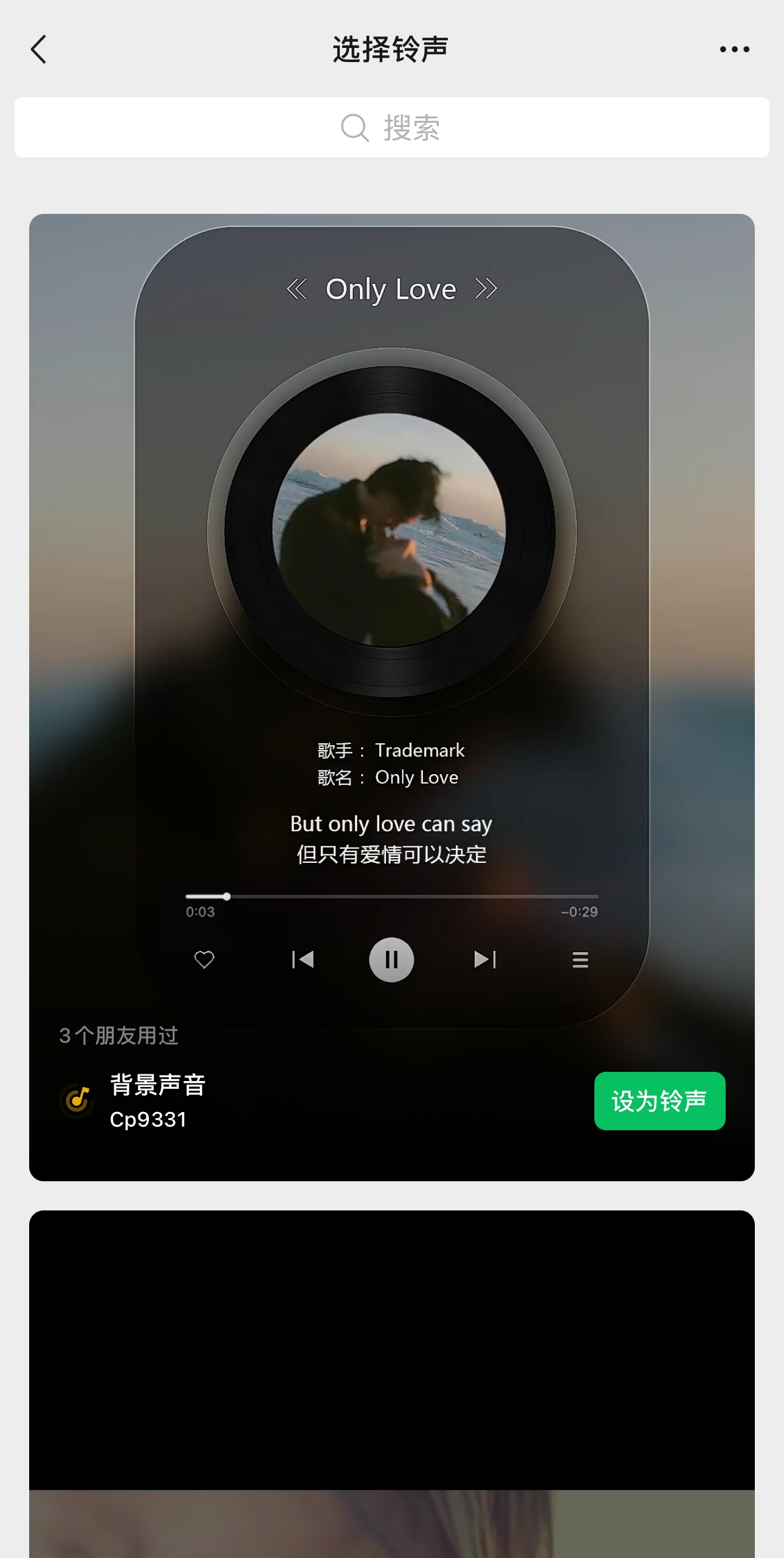 3、支持通过搜索框查找特定歌曲,也可直接选用平台推荐的精选热门铃声进行设置。