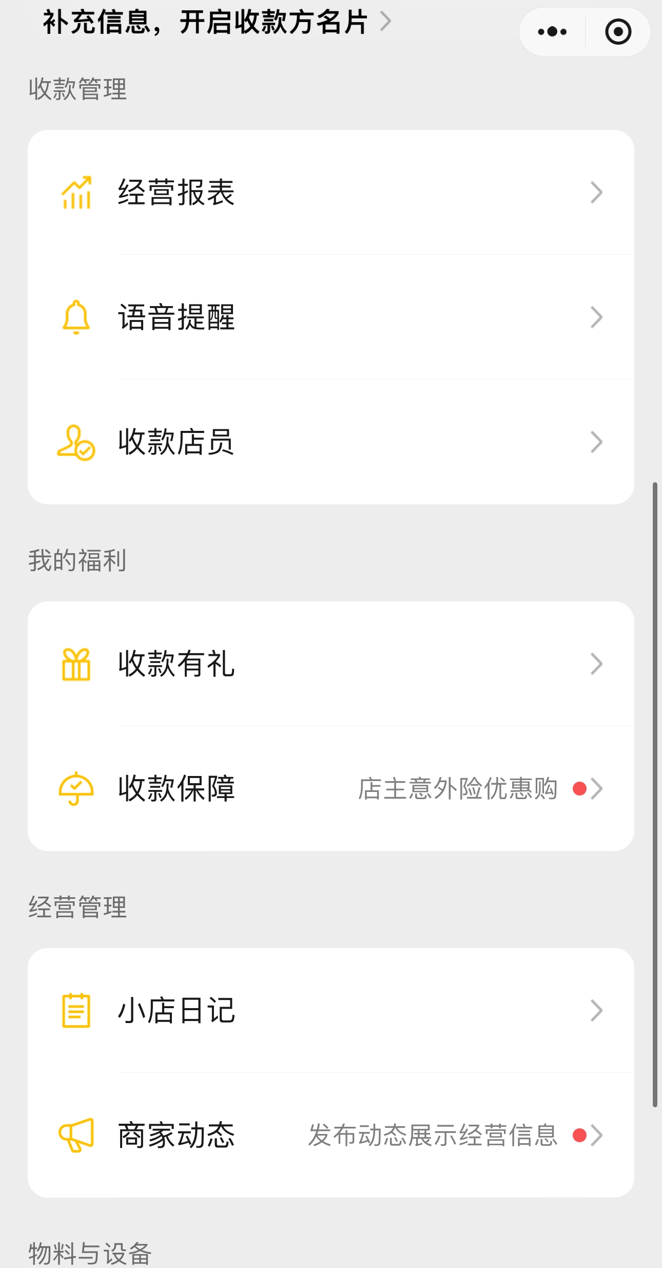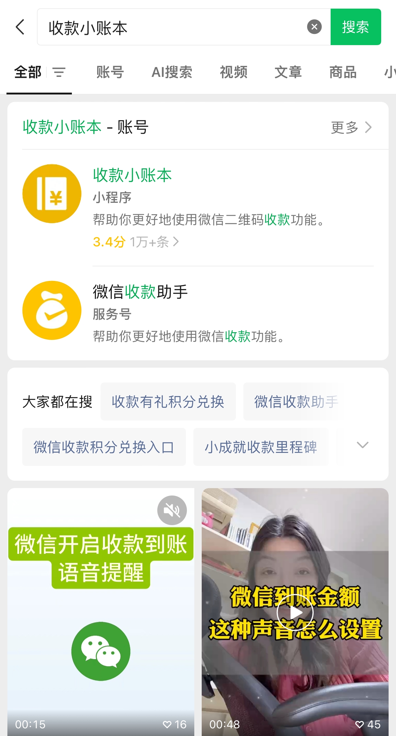 1、先搞个官方收款码,微信里搜【收款小账本】小程序申请,弄好就有自己的收款码了,收钱能攒积分。
