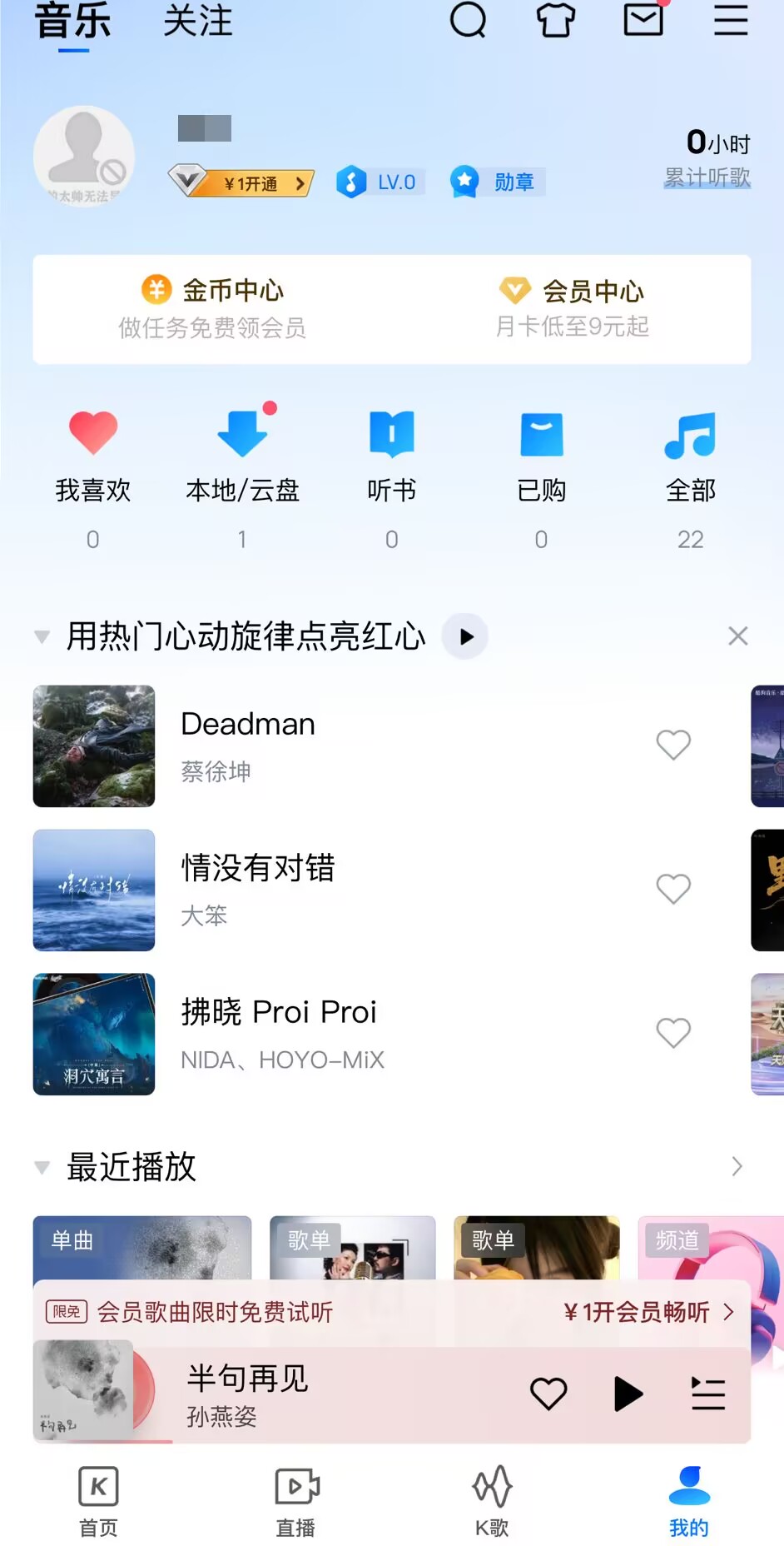 1、打开酷狗音乐,点右下角【我的】点头像进个人主页。