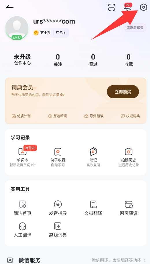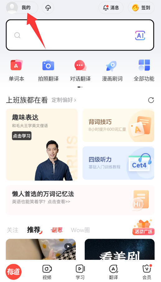 1、启动网易有道词典APP,点击左上角个人头像图标进入用户中心。