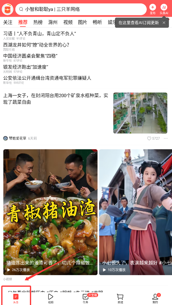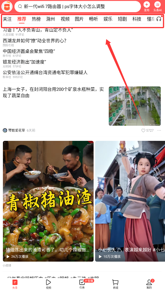 1、登录账号后,系统会自动跳转至首页推荐流。首页默认展示热门新闻、视频及个性化推荐内容。