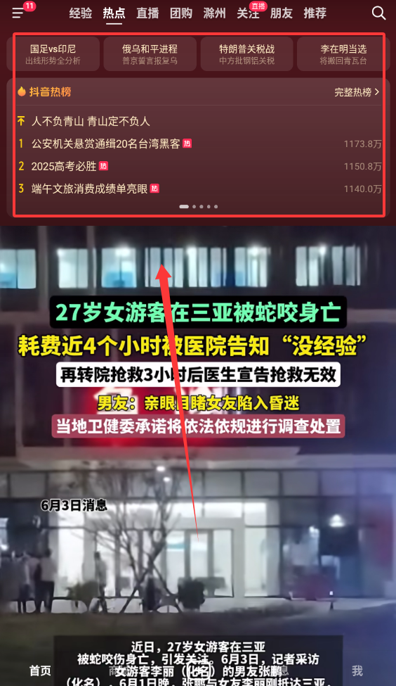 1、进入首页后点击右上角的“放大镜”进入搜索页,在搜索框下方可以看到“热点榜”或“抖音热榜”入口,点击即可查看实时热门话题。
