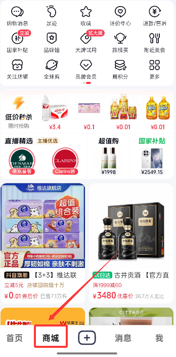 抖音首页点击底部导航栏的“商城”图标即可进入抖音商城浏览商品;查看消息则需点击首页右下角的“消息”按钮,进入后可以查看私信、系统通知和互动消息。操作简单直观,方便用户快速访问购物功能和及时回复消息,提升使用体验。