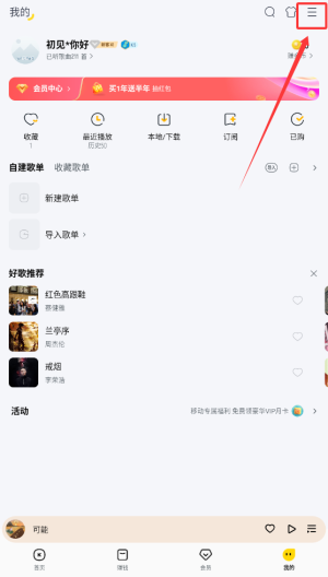 1、首先打开APP进入首页,在右上角可以看到一个麦克风图标,点击即可进入听歌识曲界面。