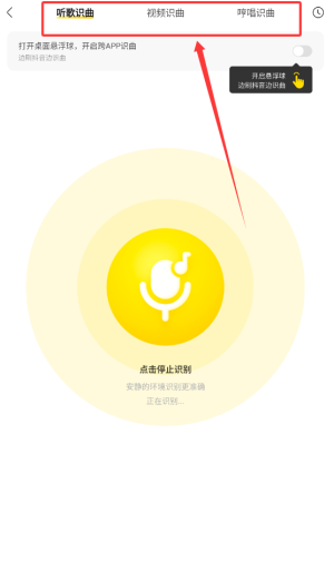 2、确保手机麦克风权限已开启,然后将手机靠近音源,系统会自动分析音乐并显示匹配结果。