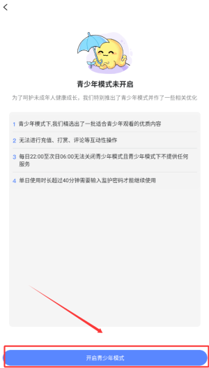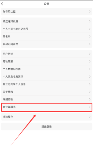 2、点击右上角的设置按钮,找到“青少年模式”选项并开启。