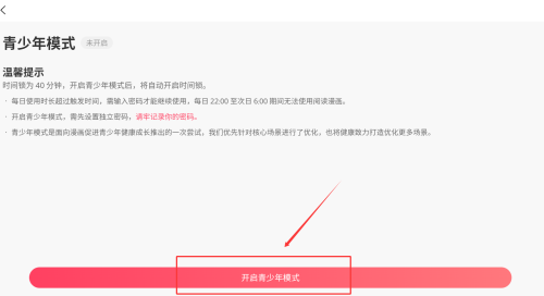 要开启团团漫画的青少年模式,首先打开团团漫画APP,点击右下角“我的”进入个人中心,找到“设置”选项并点击进入。在设置页面中选择“青少年模式”,按照提示设置密码并确认开启。开启后,系统将自动过滤不适合青少年观看的内容,确保健康阅读环境。记得妥善保管密码,避免随意关闭该功能。