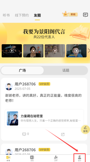 1、景阳阁听书会员开通方法很简单,打开APP后点击底部导航栏的“会员”选项。