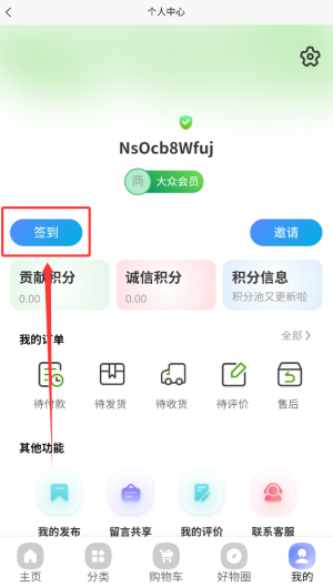 2、在首页找到“签到”入口点击即可完成每日签到,成功签到后系统自动发放积分或优惠券奖励。