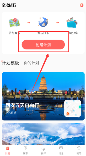 1、空浪旅行创建旅游计划的流程简单易用,用户只需登录APP或官网。