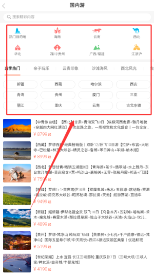 2、点击搜索即可查看相关旅游线路的详细报价,同时还能筛选不同价格区间的产品,方便您对比选择。