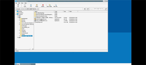 4、进入模拟界面,通过划动屏幕控制鼠标移动,点击屏幕为单击,选中D盘,在植物大战僵尸融合版1.1文件夹下找到PlantsVsZombiesRH.exe文件,点击开启(游戏开启需要一段时间,请耐心等待);