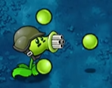 攻击间隔3秒,攻击距离一行,一次发射4个子弹,子弹最多击中三个僵尸后消失,子弹攻击力20,附带减速