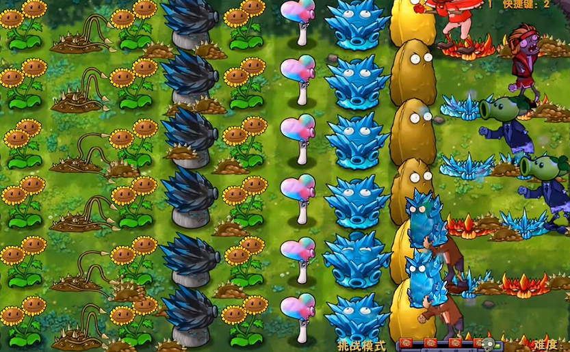 2、巧妙融合不同植物以布置不同战术,根据你的战术风格选择合适策略进行对抗;