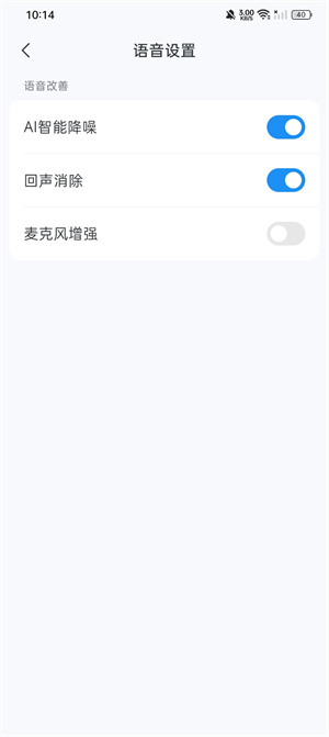 4、进入语音设置,可以选择ai智能降噪、回声消除、麦克风增强。