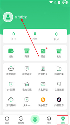 1、在我的板块中点击左上角【立即登录】。