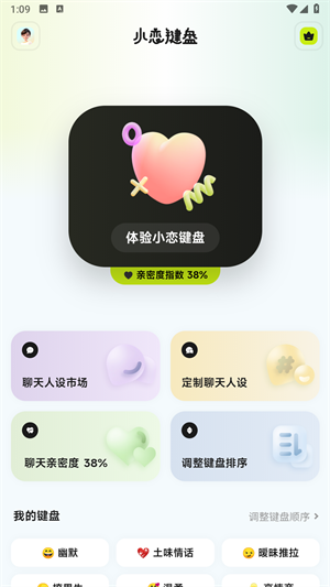 小恋键盘是一款十分优质的恋爱辅助键盘软件,可以帮助你在聊天时打破尴尬,让大家都可以轻轻松松交流,给你带来个性化体验,大家能够根据自己的喜好和需求,来对键盘进行个性化设置,满足你的个性化的需求,支持智能输入,这里能够根据用户的输入习惯和上下文,会帮助你智能推荐你可能的输入内容,还有语音输入功能,支持语音转文字,拥有自定义键盘布局、字体样式等,拥有海量聊天人设,帮助 不轻松提升聊天趣味,提升聊天亲密度。
