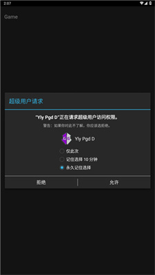 2、出现弹窗“GameGuardian正在请求超级用户访问权限”,点击【允许】。