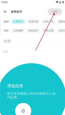 3、添加应用,完善好标题和正文之后点击发布即可。