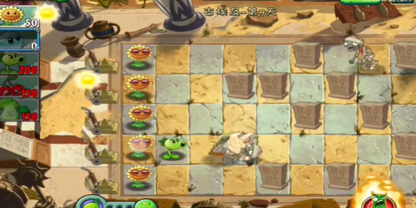 2、前期可以优先选择全图攻击的植物,这样玩家就不用照顾每一行的情况,放手关注阳光即可。
