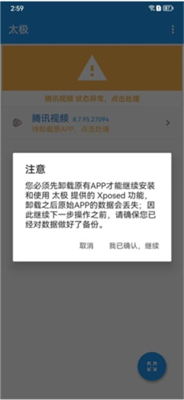 请注意:一定不要轻易卸载太极,否则太极空间会发生不可逆转的损坏,你只能卸载所有太极创建过的应用然后重新渡劫。
