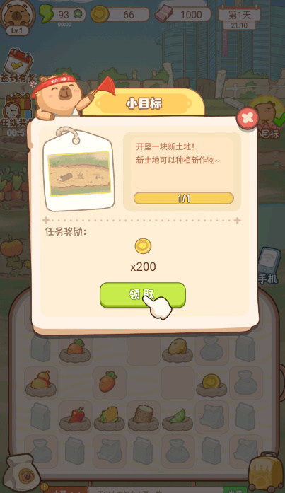 3、完成对应任务以后,可以解锁第二块新土地,然后完成对应的任务目标。