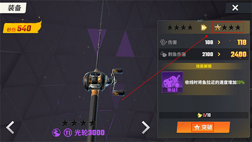4、橙竿如果强度不足,还可以通过题设功能星级的方式进一步提高钓竿等级,从而得到更高的强度。