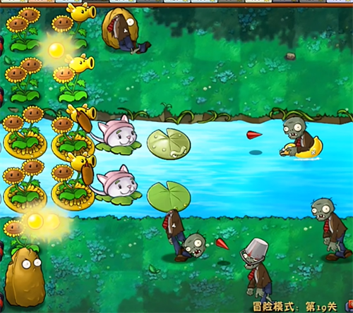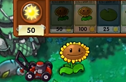 2、一般首先需要种植以向日葵为首的可以生产阳光资源的植物,保证后续的阵型布置;