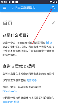 1、打开大学生活质量指北之后点击右上角的搜索按钮。