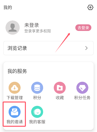1、首先进入软件后点击我的,在下图位置可以找到【我的邀请码】,点击右上角的去登录。