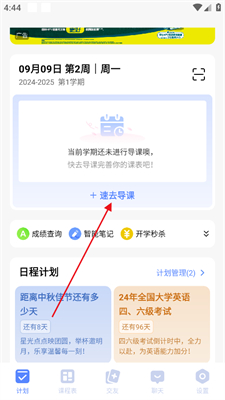 1、打开超级课程表,在【计划】板块点击【速去导课】。