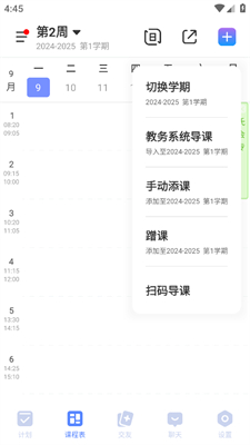 提供日视图和周视图,方便学生随时查看每天或每周的课程安排。