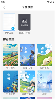 3、可以使用系统自带的主题或自定义背景。