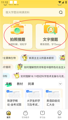 1、打开软件之后可以看到【拍照搜题】和【文字搜题】。