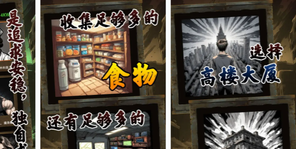 4、游戏中各种末日的环境都是非常重要的,所以玩家需要探明这个周围的所有楼房安全和这个食物分布。