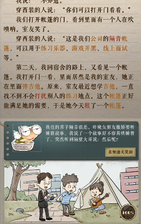 1、游戏采用图文的娱乐方式,需要根据文字、提示和图片场景来将故事补充完整。