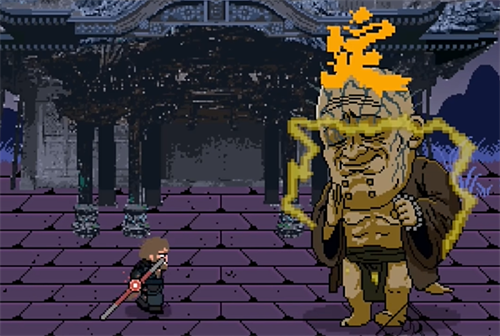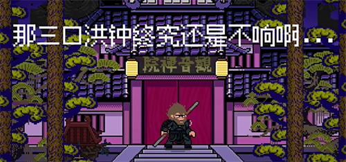 1、在像素版黑神话悟空中同样设计了金池长老作为隐藏boss,如同原作一样需要首先敲响三口钟才能与之战斗;