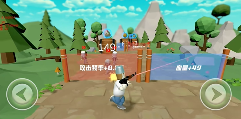 1、游戏采用横版射击战斗的方式,通过虚拟按键控制戴夫进行横向移动,同时会自动进行射击;