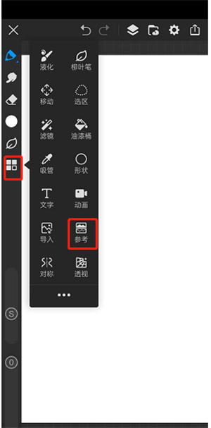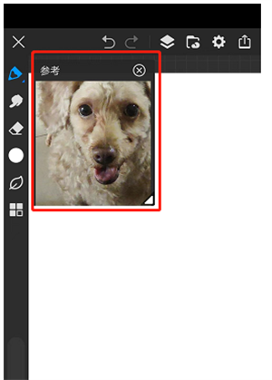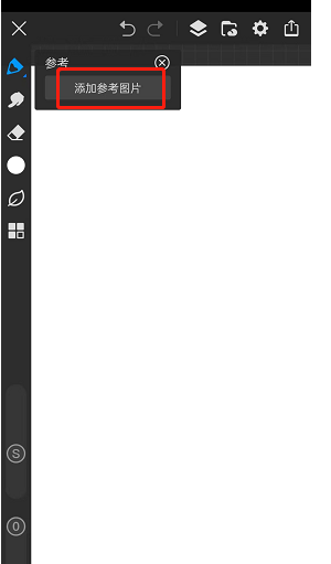 2、点击后画布的左上角会有一个【参考】的小界面,选择【添加参考图片】。