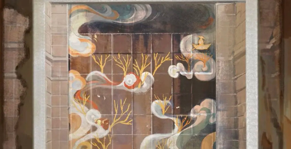 3、然后这个照片会自动消失,这个墙上就会冒出来这个花纹了。