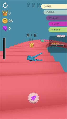 3、玩家需要尝试不断滚动的方式进行闯关,通过合理操作成功超越其他角色率先抵达终点;