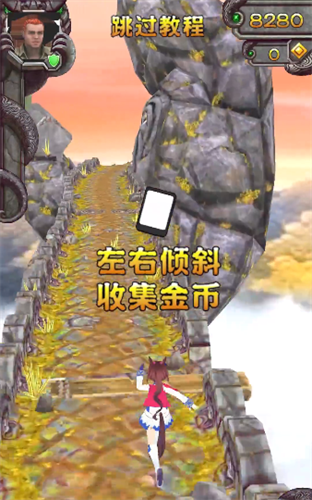 4、游戏融合了重力感应的操作方式,通过倾斜手机可以让角色进行左右变道,从而收集沿途金币以及道具;