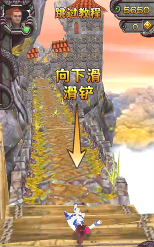 3、场景中有时会出现只有下方有足够空间通过的障碍,此时需要下划屏幕从而完成滑铲动作;