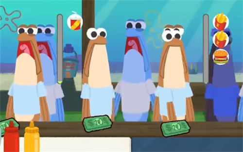 4、玩家需要根据客人的点单完成蟹黄堡的制作,记住随时不要忘记煎肉饼,因为这最消耗时间;