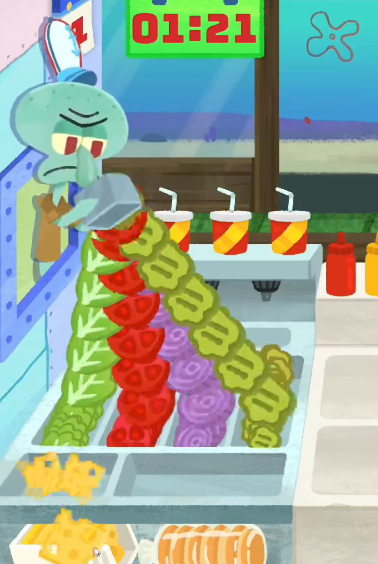 3、点击章鱼哥即可获取蟹黄堡的不同添加食材,每次点击都会直接补充满;