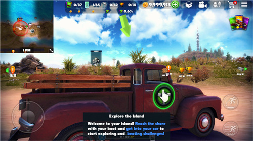 4、根据指引来到岸边后就能看到自己的车辆,靠近车辆后即可通过互动按钮上车;